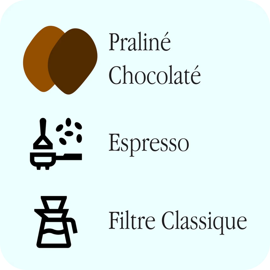 As the name suggests, this is our signature blend, the result of a decade of work to create the perfect espresso, both smooth and balanced. Easy to work with, it will be delicious with or without milk.