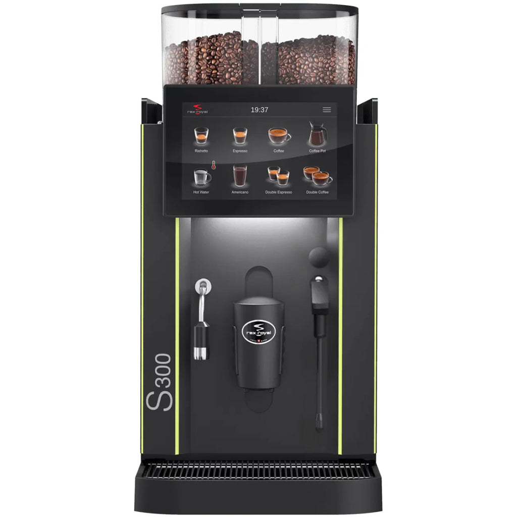 The Rex-Royal S300 is a professional, fully automatic coffee machine specifically designed for restaurants, hotels, and offices. With its high-quality metal brewing unit, which can hold up to 26g of coffee beans, it guarantees first-class coffee quality and rapid preparation of large quantities. Its brewing accelerator function improves quality and efficiency during peak hours.